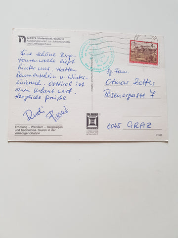 AK Hinterbichl. Ausgangspunkt zur Johannishütte und Defreggerhaus. Gelaufen. Großformat. Verlag: Mariner. Nummeriert: 353. Zustand: gut.