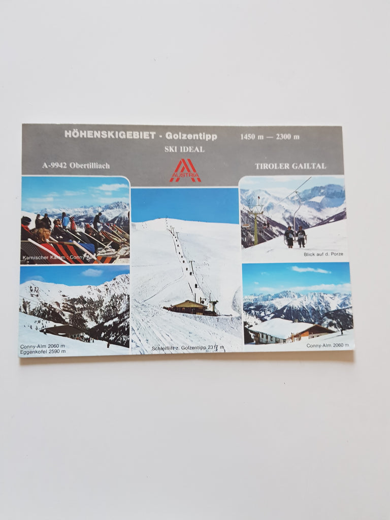 AK Höhenskigebiet Golzentipp. Obertilliach. Gelaufen. Großformat. Verlag: Mariner. Nummeriert: 50. Zustand: gut, leicht bestoßen.
