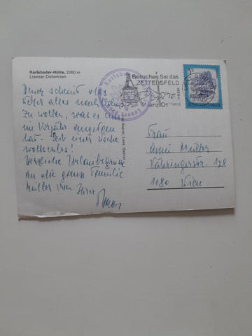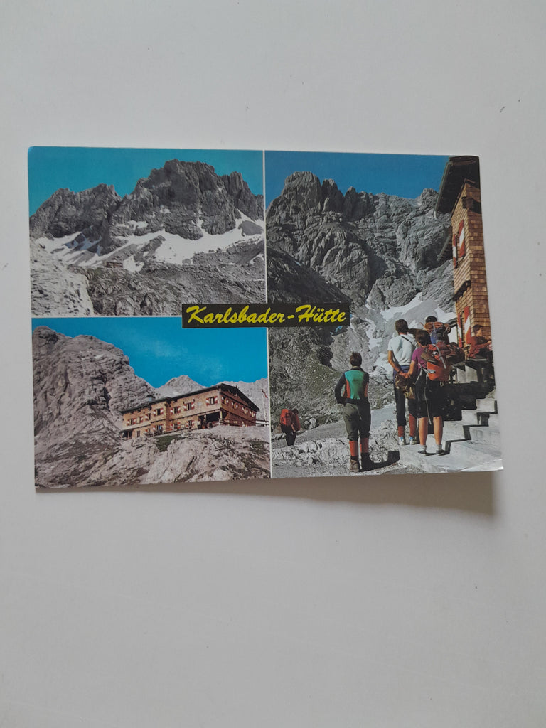 AK Karlsbader-Hütte. Gelaufen. Großformat. Verlag: Baptist. Zustand: am unteren Rand geknickt.