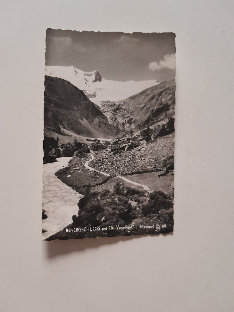AK Innergschlöss mit Gross Venediger. Gelaufen. Kleinformat. Verlag: Monopol. Nummeriert: 25165. Zustand: linke Ecken geknickt.