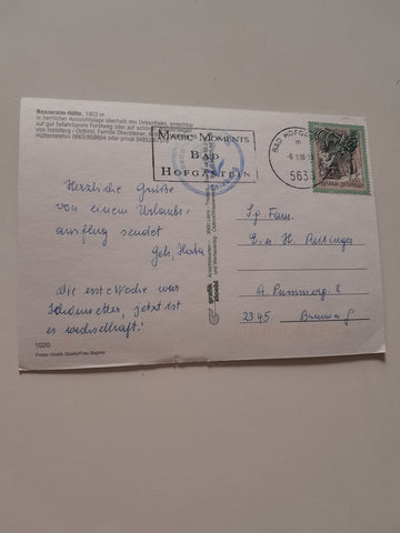 AK Roaneralm-Hütte. Iselsberg 19. Familie Obersteiner. Gelaufen. Großformat. Verlag: zloebl. Nummeriert: 1020. Zustand: Einriss am unteren Rand, linkes unteres Eck geknickt.
