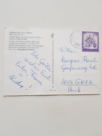 AK Kals am Großglockner. Gasthof Taurerwirt Bes. Rogl Simon. Gelaufen. Großformat. Verlag: Cosy. Nummeriert: 10114. Zustand: rechtes unteres Eck geknickt.