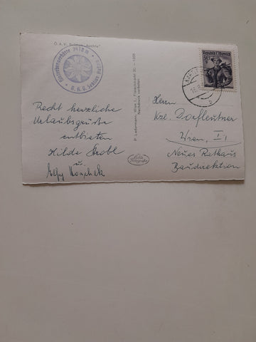 AK Viktor Hinterbergerhütte geg. 3 Zinnen u. Schusterspitze. (1958) Gelaufen. Kleinformat. Verlag: Ledermann. Nummeriert: 40963. Zustand: gut.