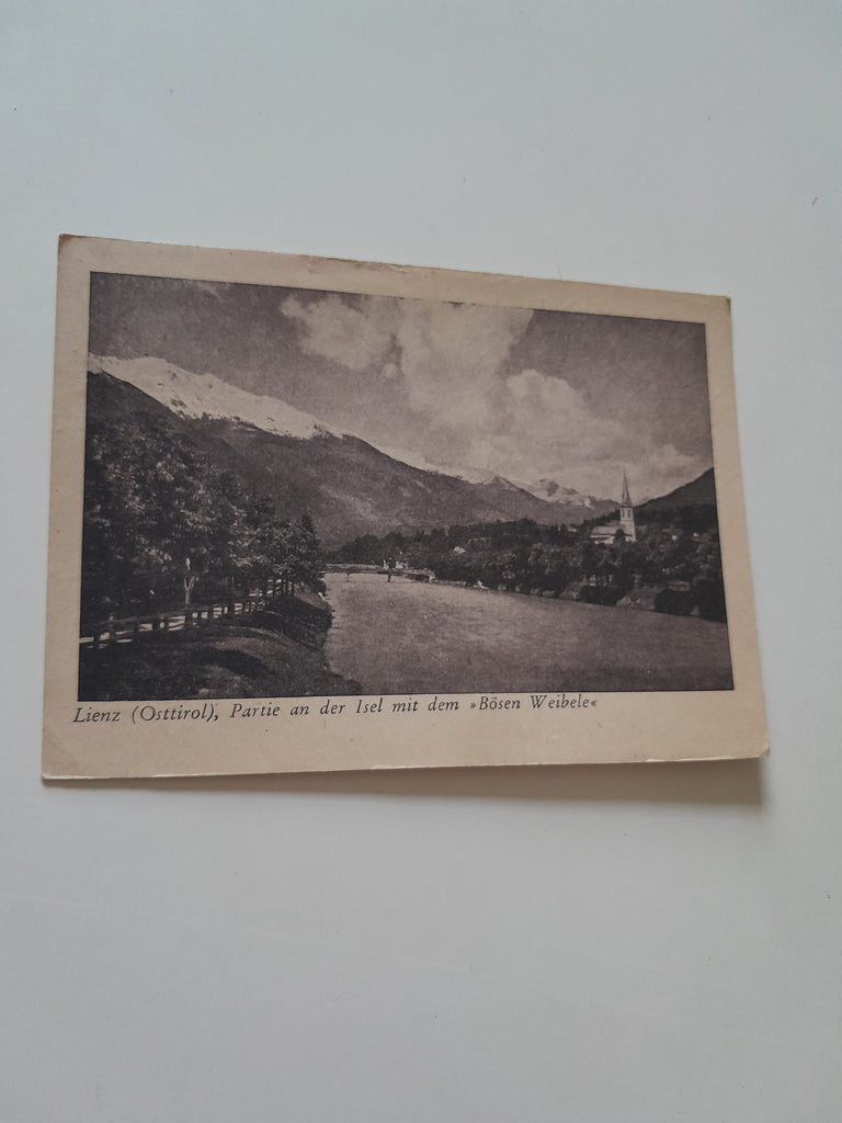 AK Lienz. Partie an der Isel mit dem Bösen Weibele. Gelaufen. Großformat. Verlag: Frank. Nummeriert: 190-17. Zustand: Einriss am oberen Rand.