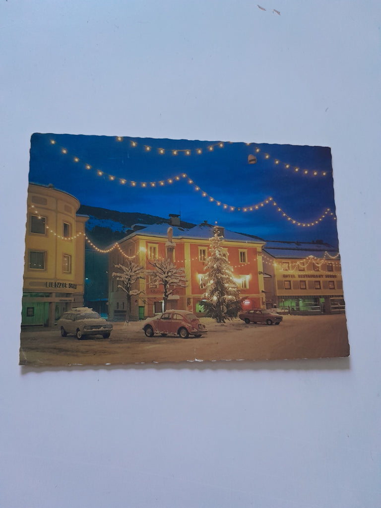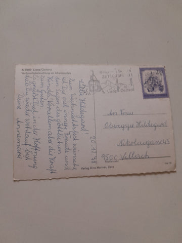 AK Lienz. Weihnachtsbeleuchtung am Johannesplatz. Gelaufen. Großformat. Verlag: Mariner. Nummeriert: 19. Zustand: stärker bestoßen.