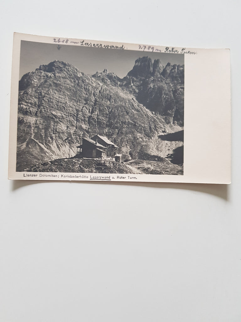 AK Lienzer Dolomiten: Karlsbaderhütte Laserzwand u. Roter Turm. Ungelaufen. Kleinformat. Verlag: Karberger. Zustand: gut.