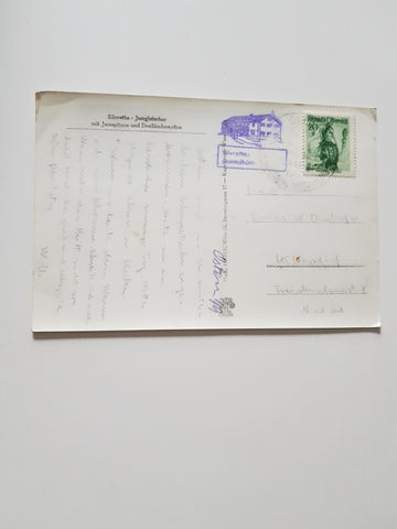 AK Silvretta Jamgletscher mit Jamspitzen und Dreiländerspitze. Gelaufen. Großformat. Verlag: Hahn. Zustand: obere Ecken geknickt.