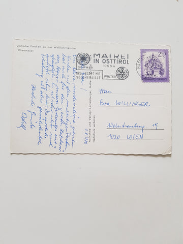 AK Obermauern. Wallfahrtskirche Gotische Fresken. Gelaufen. Großformat. Verlag: Lottersberger. Zustand: gut, linkes oberes Eck geknickt.