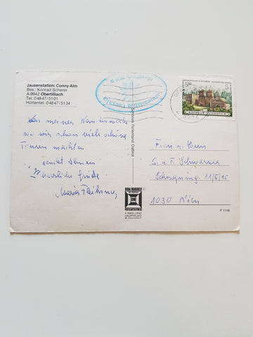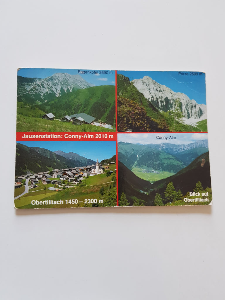 AK Obertilliach. Jausenstation Conny-Alm. Gelaufen. Großformat. Verlag: Mariner. Nummeriert: 1116. Zustand: stärker bestoßen.