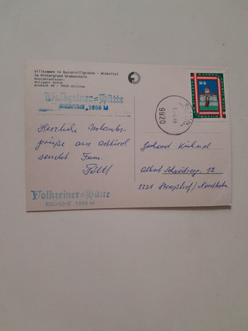 AK Volkzeiner Hütte. Außervillgraten Winkeltal. Gelaufen. Großformat. Zustand: gut.