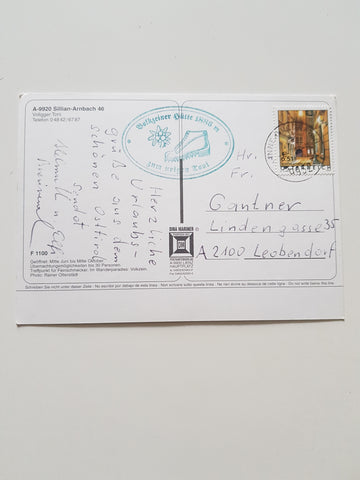 AK Volkzeiner-Hütte. Sillian-Arnbach 46. Gelaufen. Großformat. Verlag: Mariner. Nummeriert: 1100. Zustand: gut, obere Ecken leicht angestoßen.