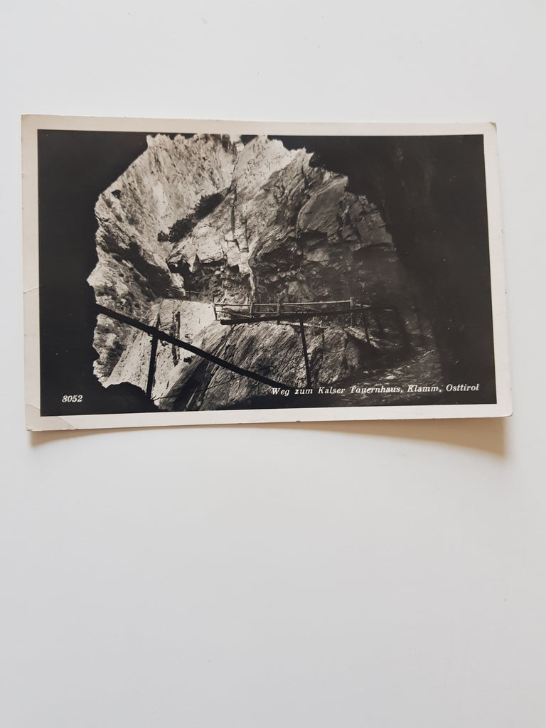 AK Weg zum Kalser Tauernhaus, Klamm. Gelaufen. Kleinformat. Verlag: KTV. Nummeriert: 8052. Zustand: rechtes oberes Eck und am linken Rand und linkes unteres Eck geknickt.