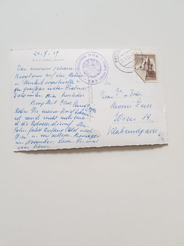 AK Hinterbergerhütte mit Schusterkogel. (1959) Gelaufen. Kleinformat. Verlag: Ledermann. Nummeriert: 41490. Zustand: gut.