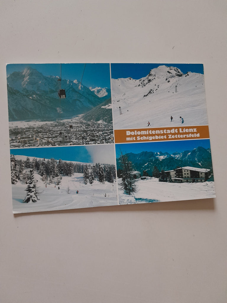AK Lienz mit Schigebiet Zettersfeld. Gelaufen. Großformat. Verlag: zloebl. Nummeriert: 39675. Zustand: gut.