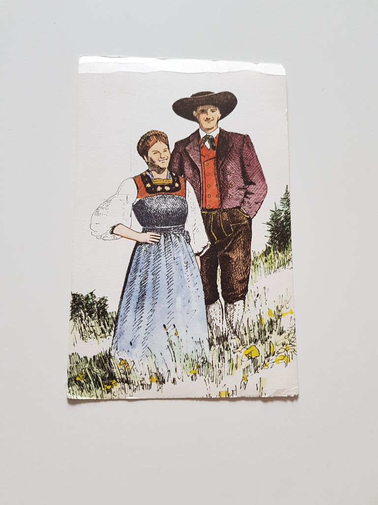 AK Trachtenpaar aus dem Bregenzer Wald. Gelaufen. Großformat. Zustand: untere Ecken und oberer Rand geknickt.