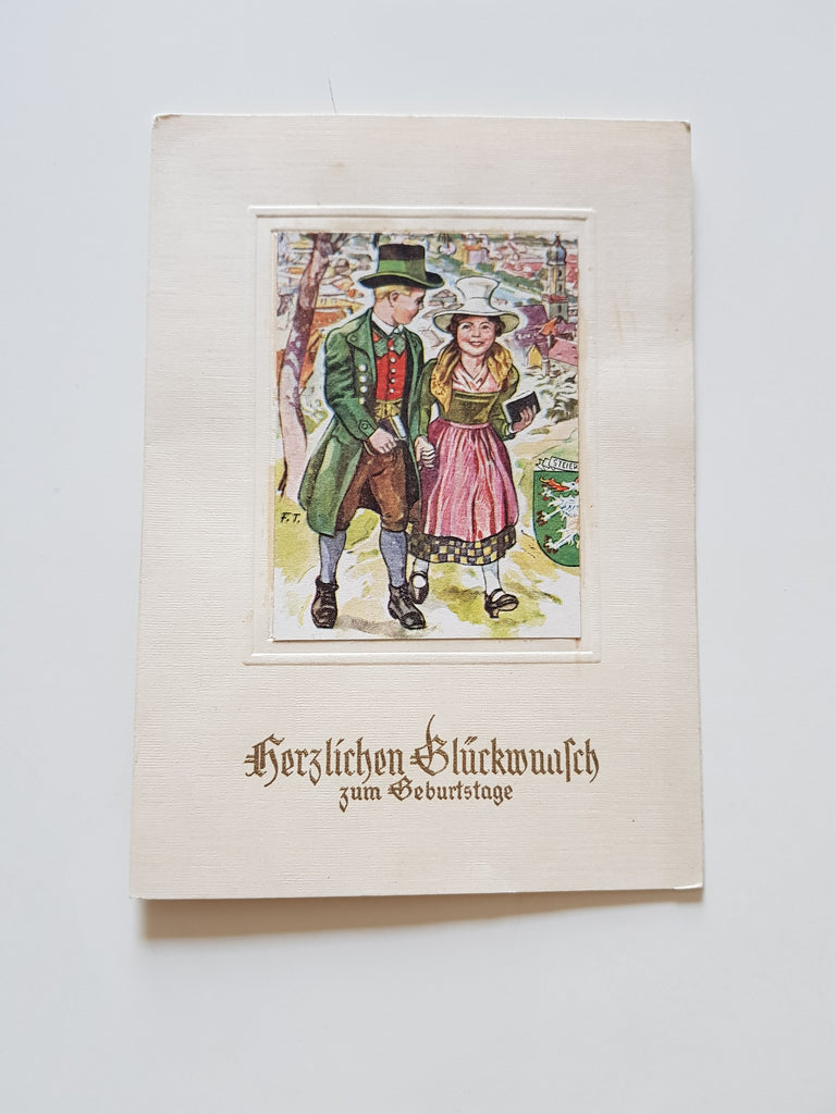 Billett Herzlichen Glückwunsch zum Geburtstage (Trachten und Graz Motiv) Unbeschrieben. Zustand: gut.