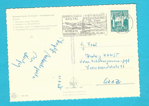 AK Hermagor Presseggersee. Gelaufen. Großformat. Verlag: Monopol. Nummeriert: F 191229. Zustand: Knick über der rechten oberen Hälfte.