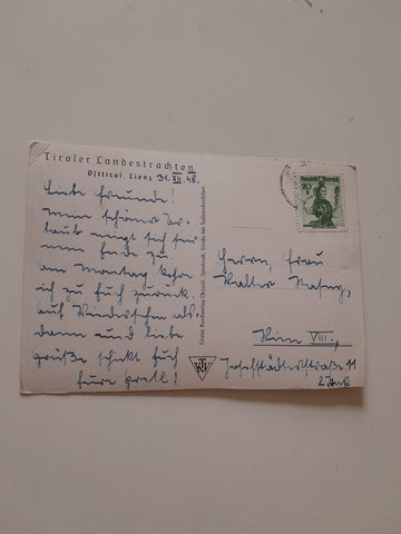 AK Tiroler Landestrachten Osttirol Lienz. Gelaufen. Großformat. Verlag: KTV. Zustand: rechtes oberes und linkes unteres Eck geknickt.