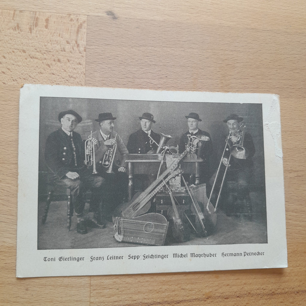 AK Original Oba Innviertler Sänger- und Humoristengesellschaft Braunau am Inn. Toni Gierlinger, Franz leitner, Sepp Feichtinger, Michel Mayrhuber, Hermann Pernecker. Ungelaufen. Großformat. Zustand: stärker bestoßen, Kleberückstände an Rückseite.