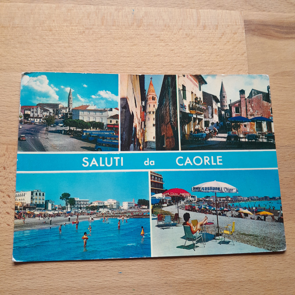 AK Saluti da Caorle. Gelaufen. Großformat. Verlag: Miorin. Zustand: linkes oberes und rechtes unteres Eck geknickt.