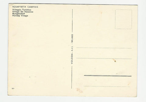 AK Rosapineta Camping. Villaggio Turistico. Ungelaufen. Großformat. Verlag: Volodia. Nummeriert: 97. Zustand: rechtes oberes Eck geknickt, Knick am unteren Rand in der linken Hälfte.