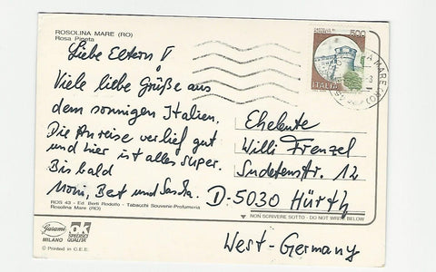 AK Rosolina Mare - Rosa Pineta. Gelaufen. Großformat. Verlag: Berti Rodolfo. Nummeriert: 43. Zustand: rechtes oberes Eck geknickt, sonst O.k.