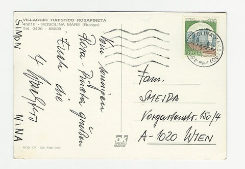 AK Villaggio Turistico Rosapineta. Rosolina Mare. Gelaufen. Großformat. Verlag: Blitz. Nummeriert: 174. Zustand: rechtes oberes und linkes unteres Eck geknickt.