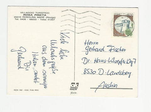 AK Villaggio Turistico Rosapineta. Rosolina Mare. Gelaufen. Großformat. Verlag: Blitz. Nummeriert: 182. Zustand: linkes unteres Eck geknickt, sonst O.k.