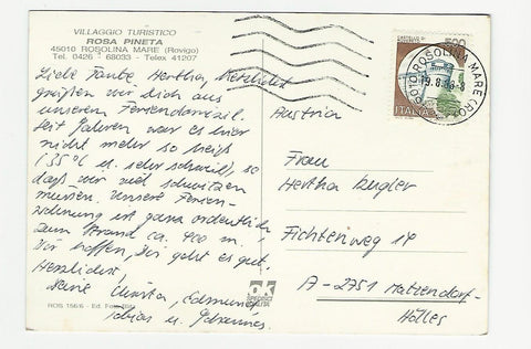 AK Villaggio Turistico Rosapineta. Rosolina Mare. Gelaufen. Großformat. Verlag: Blitz. Nummeriert: 156/6. Zustand: gut.