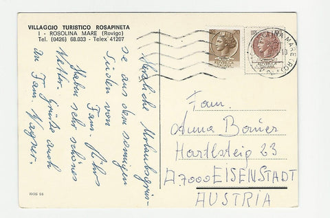 AK Villaggio Turistico Rosapineta. Rosolina Mare. Gelaufen. Großformat. Verlag: Nummeriert: 66. Zustand: gut, linkes unteres Eck angeknickt.