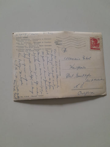 AK Abano Terme. Zona residenziale Monumento a Cristoforo Colombo ed Hotel Astoria. Gelaufen. Großformat. Zustand: leicht bestoßen.