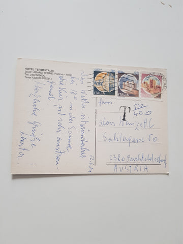AK Abano Terme. Hotel Terme Italia. Gelaufen. Großformat. Zustand: am oberen Rand beschrieben.