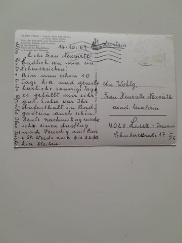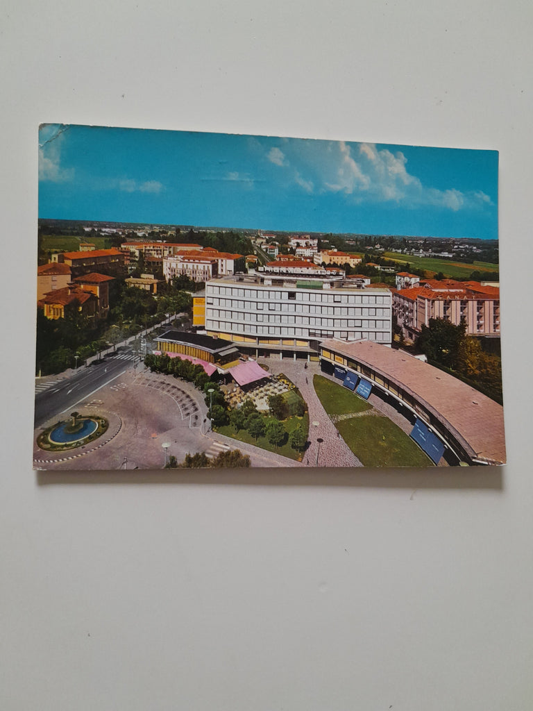 AK Abano Terme. Piazza della Repubblica e Viale delle Terme. Gelaufen, aber Briefmarke wurde entfernt. Großformat. Zustand: linkes oberes Eck geknickt.