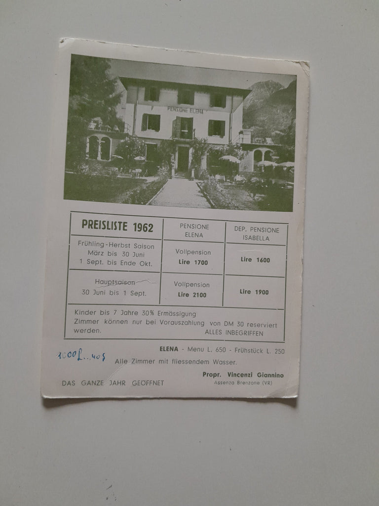 AK Assenza di Brenzone. Lago di Garda. Pensione Elena. Ungelaufen. Großformat. Zustand: Knicke.