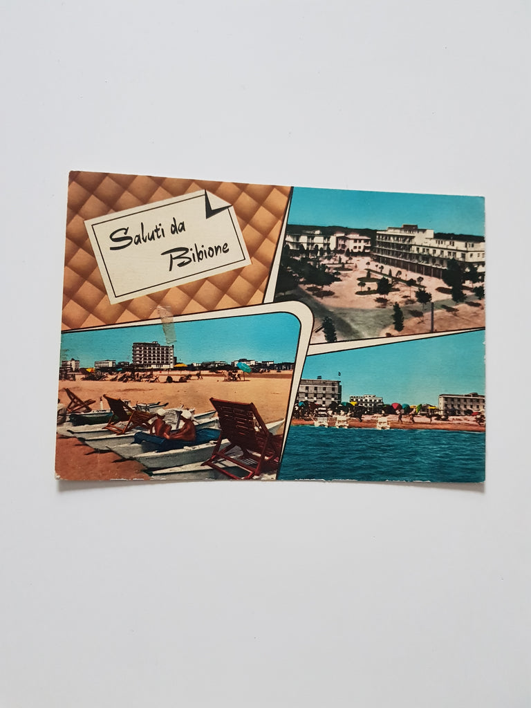 AK Saluti da Bibione. Gelaufen. Großformat. Zustand: Kleberückstände an Rückseite.