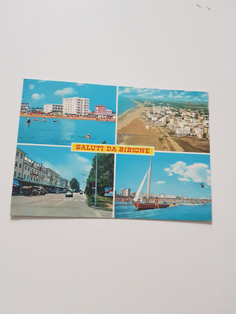 AK Saluti da Bibione. Gelaufen. Großformat. Zustand: obere Ecken geknickt.