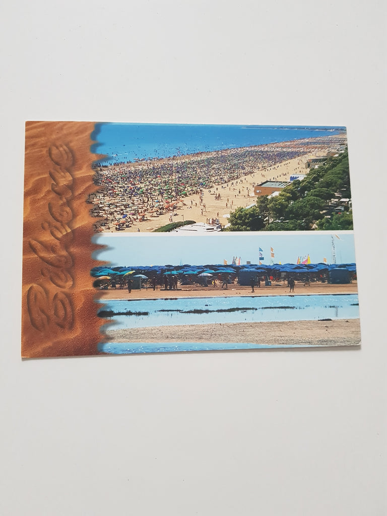AK Saluti da Bibione. Gelaufen. Großformat. Nummeriert: 77. Zustand: untere Ecken geknickt.