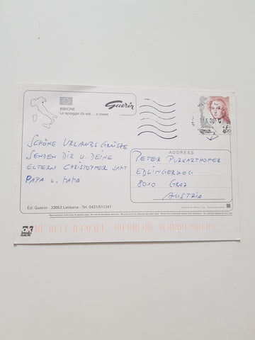 AK Grüsse aus Bibione. Gelaufen. Großformat. Zustand: rechtes oberes Eck geknickt.