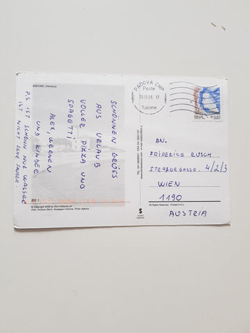 AK Saluti da Bibione. Gelaufen. Neues Großformat. Nummeriert: 1. Zustand: stärker bestoßen.