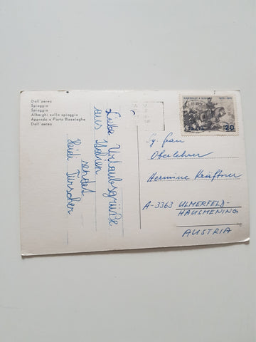 AK Saluti da Bibione. Gelaufen. Großformat. Zustand: gut, rechtes unteres Eck angeknickt.