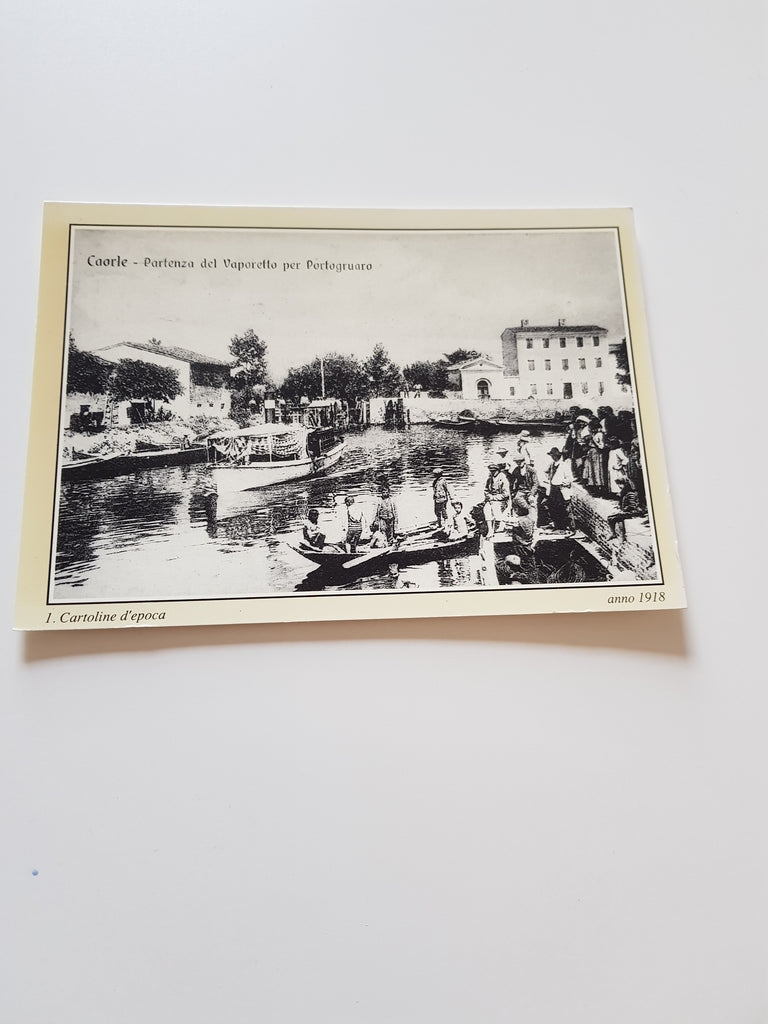 AK Caorle - Partenza del Vaporetto per Portogruaro. 1. Cartoline d'epoca. Anno 1918. Ungelaufen. Neues Großformat. Verlag: Vinicio Dona. Zustand: gut.