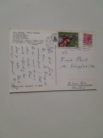 AK Colli Euganei Arqua Petrarca. la Casa del Poeta. Gelaufen. Großformat. Nummeriert: 37. Zustand: linkes oberes und rechtes unteres Eck geknickt.