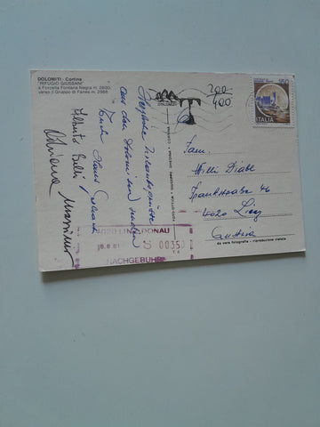 AK Cortina. Rifugio Giussani a Forcella Fontana Negra. Gelaufen. Großformat. Nummeriert: 4. Zustand: gut, leicht bestoßen.