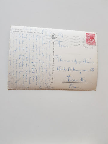 AK Cortina. Stadio Olimpico del Ghiaccio. Gelaufen. Großformat. Nummeriert: 052. Zustand: gut, linkes oberes Eck angeknickt.