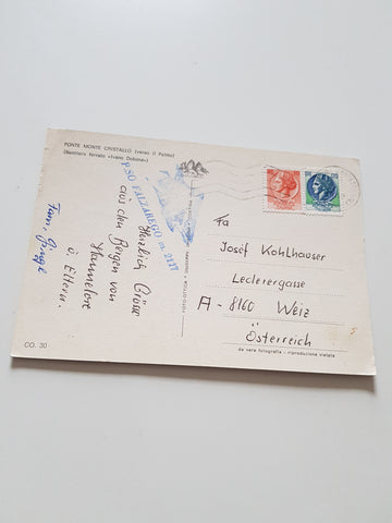 AK Ponte Monte Cristallo. (verso il Pelmo) Gelaufen. Großformat. Nummeriert: CO. 30. Zustand: rechtes unteres Eck geknickt.