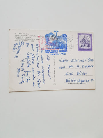 AK Cortina d'Ampezzo. Ponte Cristallo (Via Ferrata Dibona...) Rifugio G. Lorenzi. Gelaufen. Großformat. Nummeriert: 178. Zustand: gut.