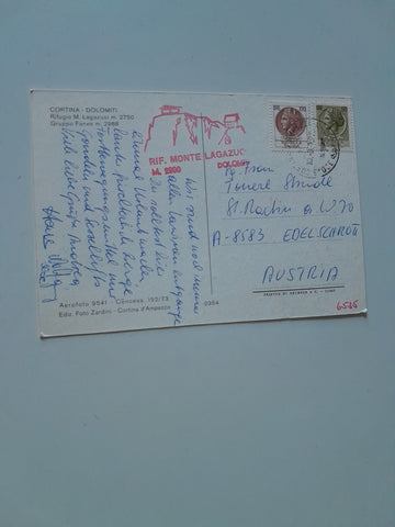 AK Cortina. Rifugio M. Lagazuoi. Gelaufen. Großformat. Nummeriert: 0354. Zustand: gut.