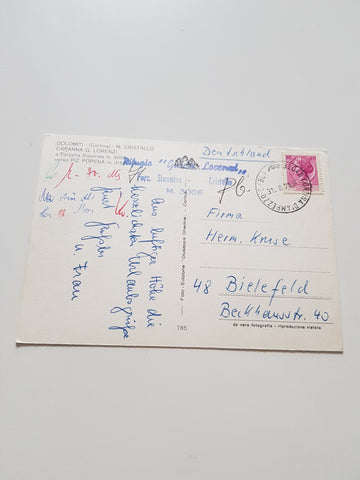 AK Cortina. Monte Cristallo. Capanna G. Lorenzi. Gelaufen. Großformat. Nummeriert: 785. Zustand: gut, Ecken wenig angestoßen.