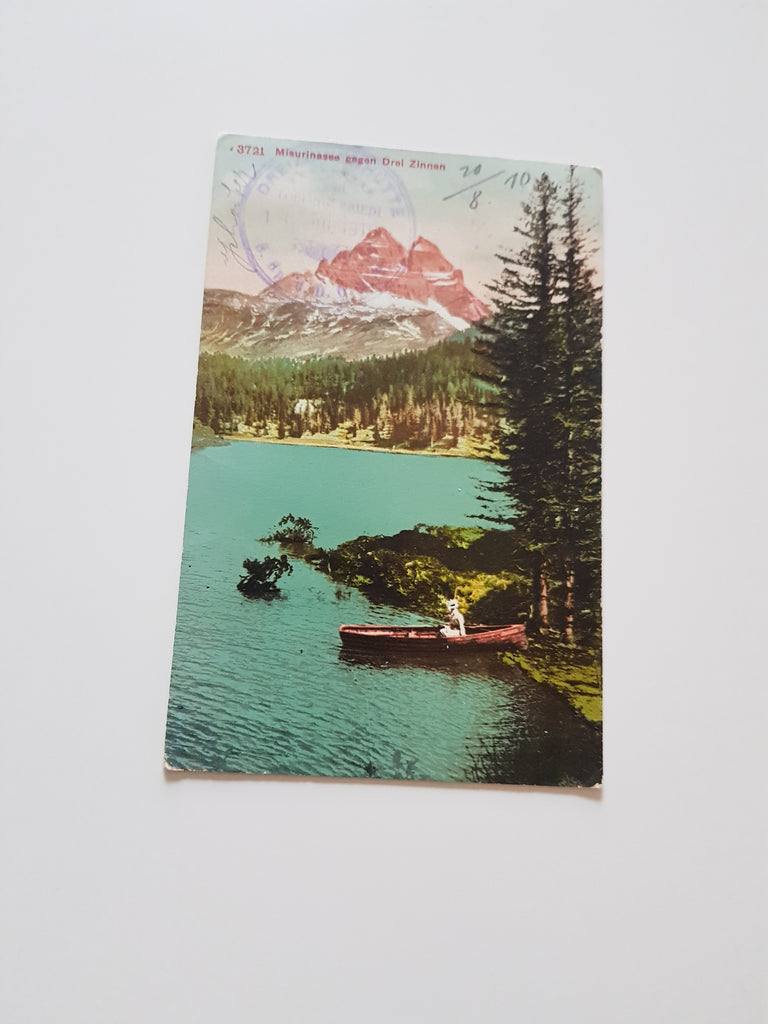 AK Misurinasee gegen Drei Zinnen. Gelaufen. Kleinformat. Verlag: Photoglob. Zustand: gut, Ecken leicht angestoßen.