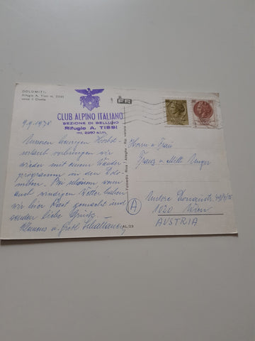 AK Rifugio A. Tissi verso il Civetta. Gelaufen. Großformat. Nummeriert: 23. Zustand: gut.